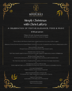 Reservations can be made via our website, simply select ‘book a table’, then ‘Simply Christmas with Chris Lafferty’ and 19:30. Payment will be taken as part of the booking process.